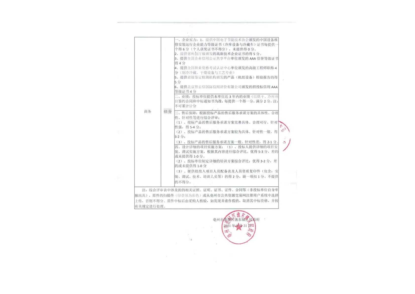 2021年8月,安徽省亳州市谯城区谯东镇人民政府在招标项目书中,明确表示,提供JYPC全国职业资格考试认证中心颁发的高级工程师职称得4分(制冷冷藏、干燥设备与工艺专业)。